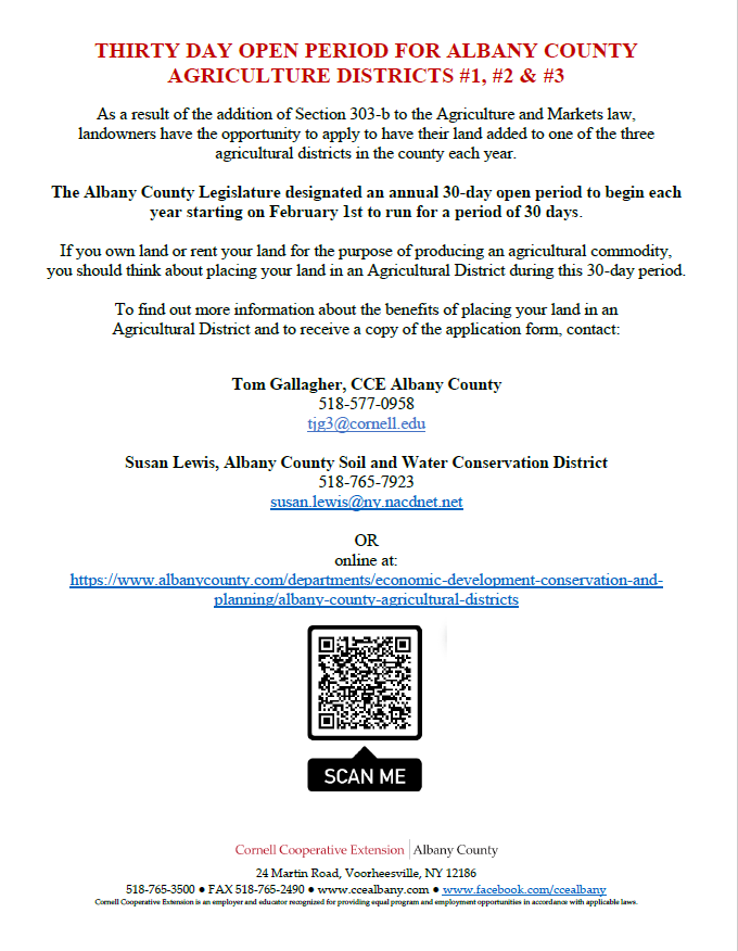 PUBLIC NOTICE: Open Period for Albany County Agriculture Districts #1, #2, & #3